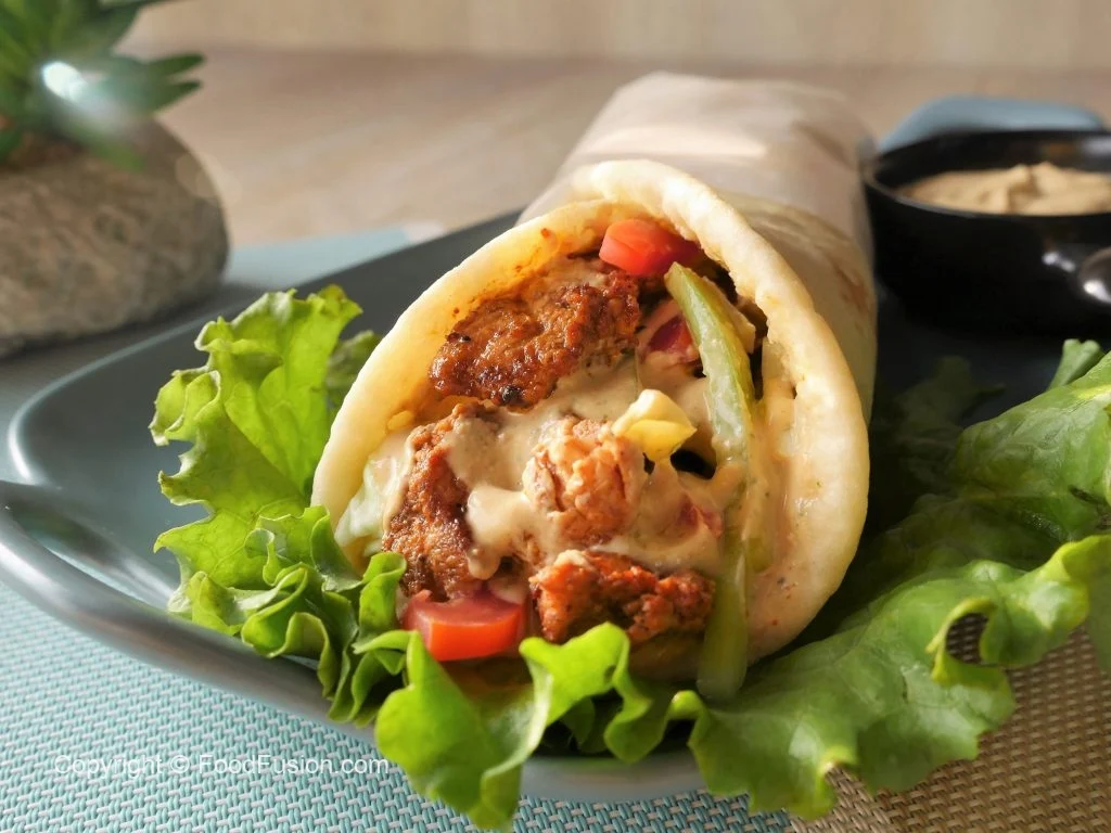 Smokey grilled chicken marinated in aromatic spices, wrapped in soft pita bread with fresh lettuce, tomatoes, onions, pickles, and a drizzle of creamy garlic and tangy sauces — a burst of flavor in every bite!