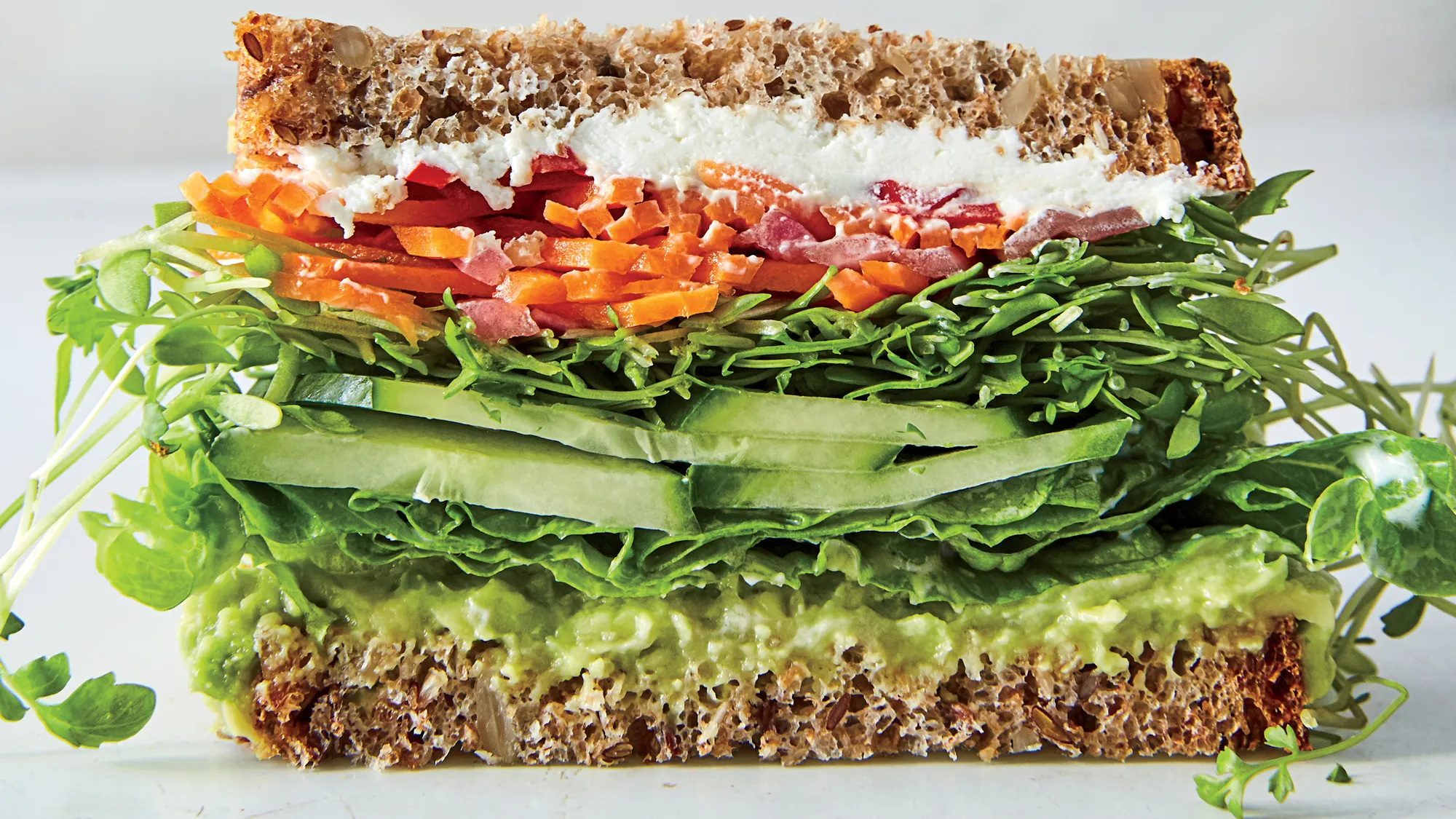 3 sliced of toasted bread, lettuce, tomato, carrot, cucumber & flavoured mayo.